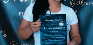 A fine corso sarà consegnato un Attestato di partecipazione, rilasciato da Studio Beauty Napolitano by Oksana Lapchak.